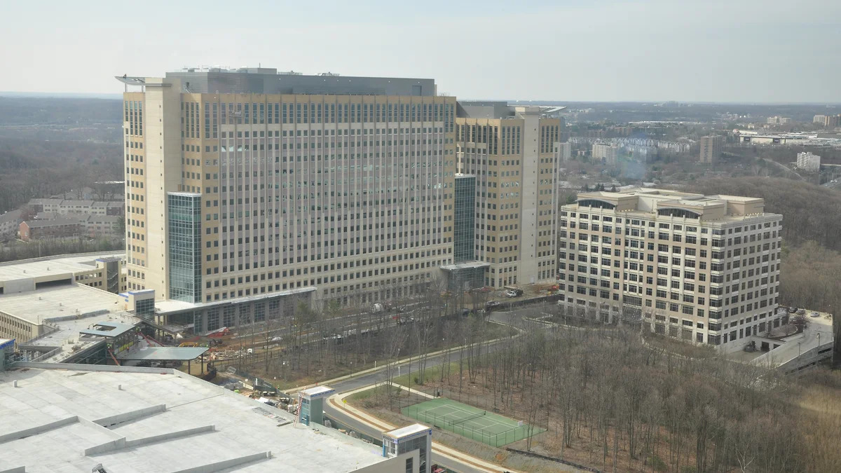 Институт оборонного анализа (здание справа). Джим Саймонс работал здесь с 1964 по 1967 год